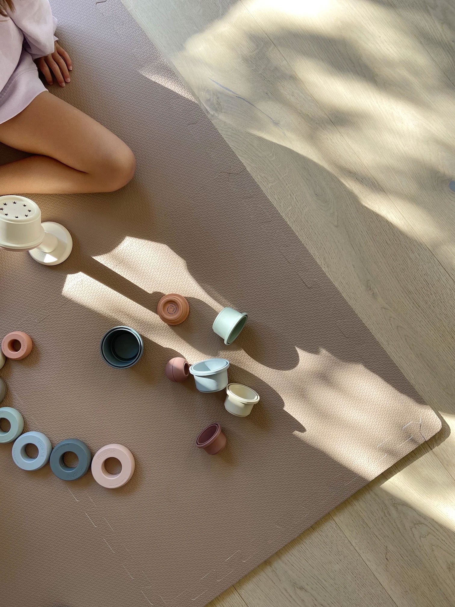 Eeveve playmats adapt to each stage of your child's growth. In the early months, they provide a safe space for your baby to learn to sit and crawl. They're especially handy during tummy time when your baby is working on strengthening its neck muscles. As your child grows older, the mat continues to be a perfect spot for climbing, reading a book, or simply lounging in the playroom.