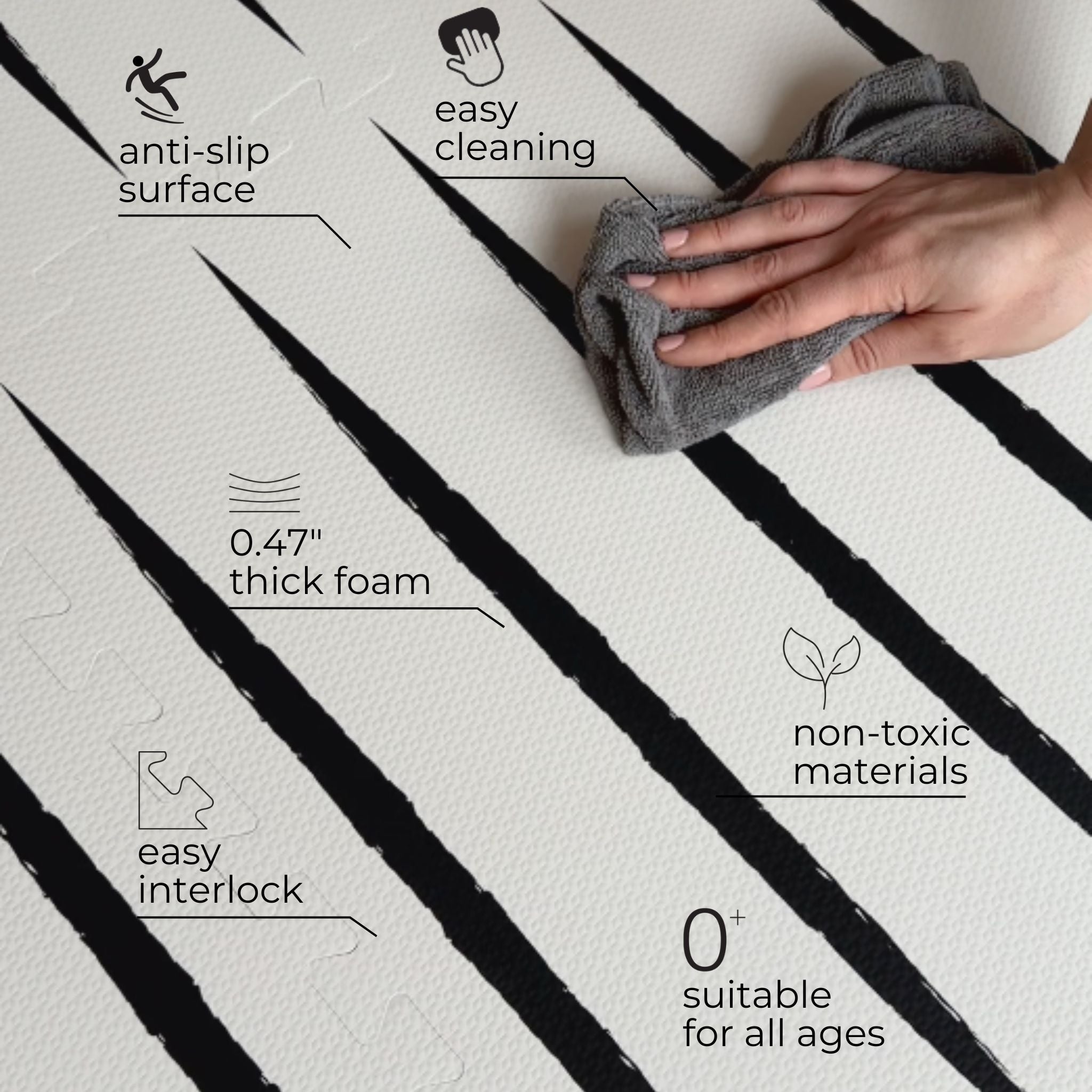 Material features: Non-toxic High quality EVA FOAM, soft and cushioning, non-slip, waterproof and allergy-friendly surface.